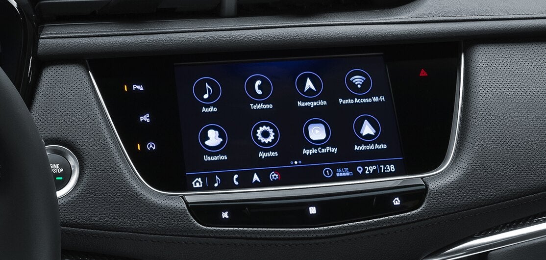 Sistema de Infoentretenimiento Cadillac User Experience con pantalla táctil de 8” HD a color, reconfigurable. Con navegación, conectividad y personalización.