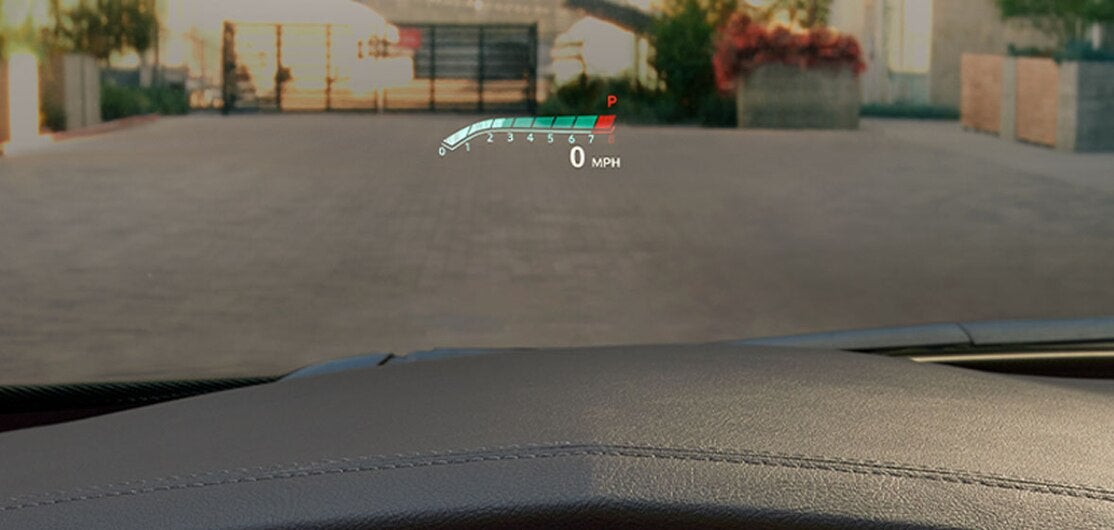 Head-Up Display, pantalla a color reconfigurable que despliega lecturas digitales para que el conductor no aparte la vista del camino.