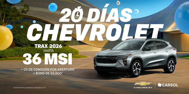 Aplican restricciones. Vigencia del 03 al 31 de marzo del 2026. Promoción válida para la República Mexicana en operaciones con GM Financial de México, S.A. de C.V., SOFOM, E.R. Sujeto a aprobación de contratación final. Las cantidades expresadas y la contratación son en Moneda Nacional. A partir de los 75 años se requiere de aval. El tiempo de respuesta a las solicitudes está sujeto a presentar la documentación completa y correcta solicitada por GM Financial de México, S.A. de C.V. SOFOM, E.R., así como a la verificación de dicha documentación. Esta publicidad no representa un contrato o una oferta de contrato y las mismas se encuentran sujetas a cambios sin previo aviso y a la aprobación final de GM Financial de México, S.A. de C.V. SOFOM, E.R. para contratar. Ninguna de estas ofertas aplica con otras promociones ni en la compra de vehículos flotilla. Para más información sobre los planes de financiamiento y arrendamiento, requisitos de contratación y comisiones con GM Financial de México, S.A. de C.V., SOFOM, E.R. (GM Financial), consulte www.gmfinancial.mx.