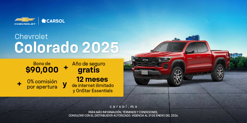 Aplican restricciones. Vigencia del 03 de enero al 03 de febrero del 2026. Promoción válida para la República Mexicana en operaciones con GM Financial de México, S.A. de C.V., SOFOM, E.R. Sujeto a aprobación de contratación final. Las cantidades expresadas y la contratación son en Moneda Nacional. A partir de los 75 años se requiere de aval. El tiempo de respuesta a las solicitudes está sujeto a presentar la documentación completa y correcta solicitada por GM Financial de México, S.A. de C.V. SOFOM, E.R., así como a la verificación de dicha documentación. Esta publicidad no representa un contrato o una oferta de contrato y las mismas se encuentran sujetas a cambios sin previo aviso y a la aprobación final de GM Financial de México, S.A. de C.V. SOFOM, E.R. para contratar. Ninguna de estas ofertas aplica con otras promociones ni en la compra de vehículos flotilla. Para más información sobre los planes de financiamiento y arrendamiento, requisitos de contratación y comisiones con GM Financial de México, S.A. de C.V., SOFOM, E.R. (GM Financial), consulte www.gmfinancial.mx.