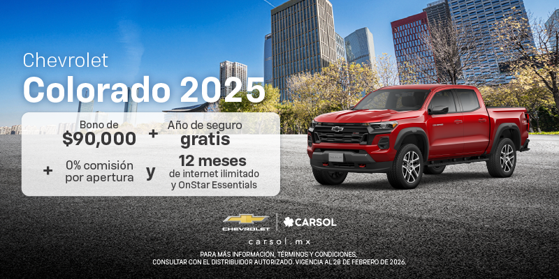 Aplican restricciones. Vigencia del 08 de febrero al 02 de marzo del 2026. Promoción válida para la República Mexicana en operaciones con GM Financial de México, S.A. de C.V., SOFOM, E.R. Sujeto a aprobación de contratación final. Las cantidades expresadas y la contratación son en Moneda Nacional. A partir de los 75 años se requiere de aval. El tiempo de respuesta a las solicitudes está sujeto a presentar la documentación completa y correcta solicitada por GM Financial de México, S.A. de C.V. SOFOM, E.R., así como a la verificación de dicha documentación. Esta publicidad no representa un contrato o una oferta de contrato y las mismas se encuentran sujetas a cambios sin previo aviso y a la aprobación final de GM Financial de México, S.A. de C.V. SOFOM, E.R. para contratar. Ninguna de estas ofertas aplica con otras promociones ni en la compra de vehículos flotilla. Para más información sobre los planes de financiamiento y arrendamiento, requisitos de contratación y comisiones con GM Financial de México, S.A. de C.V., SOFOM, E.R. (GM Financial), consulte www.gmfinancial.mx.