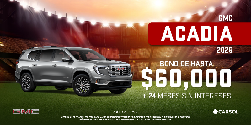 Aplican restricciones. Válido del 01 al 30 de abril de 2026. Promoción válida para la República Mexicana en operaciones con GM Financial de México, S.A. de C.V., SOFOM, E.R. Sujeto a aprobación de contratación final. Las cantidades expresadas y la contratación son en Moneda Nacional. A partir de los 75 años se requiere de aval. El tiempo de respuesta a las solicitudes está sujeto a presentar la documentación completa y correcta solicitada por GM Financial de México, S.A. de C.V. SOFOM, E.R., así como a la verificación de dicha documentación. Esta publicidad no representa un contrato o una oferta de contrato y las mismas se encuentran sujetas a cambios sin previo aviso y a la aprobación final de GM Financial de México, S.A. de C.V. SOFOM, E.R. para contratar. Ninguna de estas ofertas aplica con otras promociones ni en la compra de vehículos flotilla. Para más información sobre los planes de financiamiento y arrendamiento, requisitos de contratación y comisiones con GM Financial de México, S.A. de C.V., SOFOM, E.R. (GM Financial), consulte www.gmfinancial.mx.